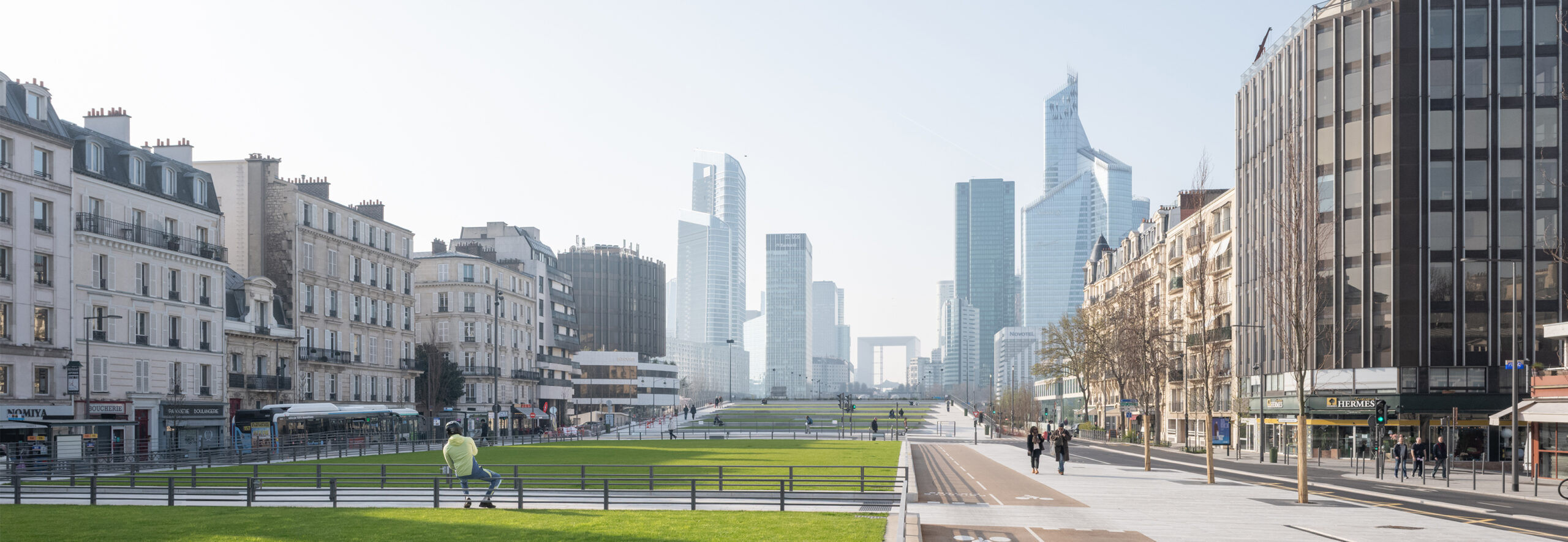 Ce projet d’envergure signe la « reconquête « ré humanisation » de 10 hectares d’espaces publics. Véritable acte politique, il incarne une double ambition, à la fois visuelle et prospective : celle d’un espace public reconquis, où le prestige repose sur une approche volontaire, globale et multifactorielle de l’espace public qui génère une nouvelle destination au cœur du Grand Paris.